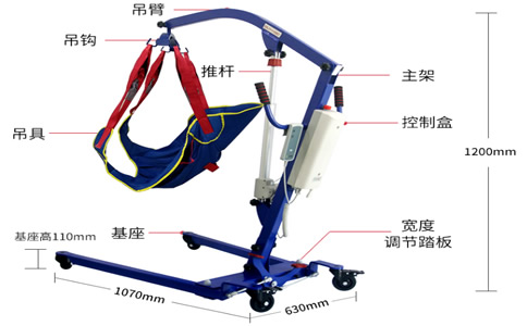 天轨移位机的使用方法是非常简单便捷的,主要就是利用遥控器控制移位机吊钩上下升降和前后移动,具体操作方法就是在给使用者穿戴好专用的移位机吊具,然之后将吊具的四个挂孔分别挂在移位机的吊钩上,完成移动位置的前期工作,然后就按下遥控器上升按钮将患者从病床上完全吊起,然后就利用前后移动的功能将患者移动到目的位置,完成病人的移位。
