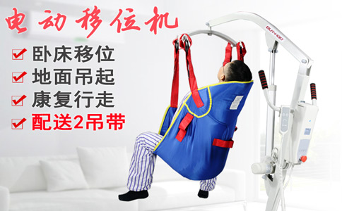 移位机主要是用于将行动不方便的人从一个位置移动到另一个位置,使护理工作更便捷高效和安全舒适。给家里有瘫痪病人的家庭或相关医疗机构或养老院或康复中心等等带来了福音,实现了瘫痪病人、急危重症病人、长期卧床的失能人员等不能自主运动人群在床、轮椅、座椅、坐便器之间的安全轻松的转移,降低了护理劳动量,提高了病人或老年人的生活质量。