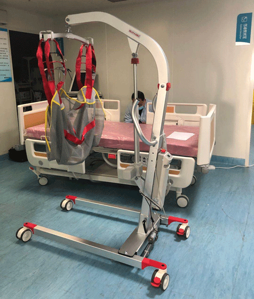 针对下肢不能自主活动的患者:电动移位机可进行早期转移作用,再配合患者进行体位适应性训练和肌力恢复训练,缓解卧床并发症,下肢肌力可以得到初步恢复,使患者能够完成简单的关节屈伸。当患者只能做部分范围的运动,不能做全范围运动:也可以利用电动移位机的减重系统,配合患者进行肌力训练和关节活动度训练并对患者的静态平衡能力进行训练。