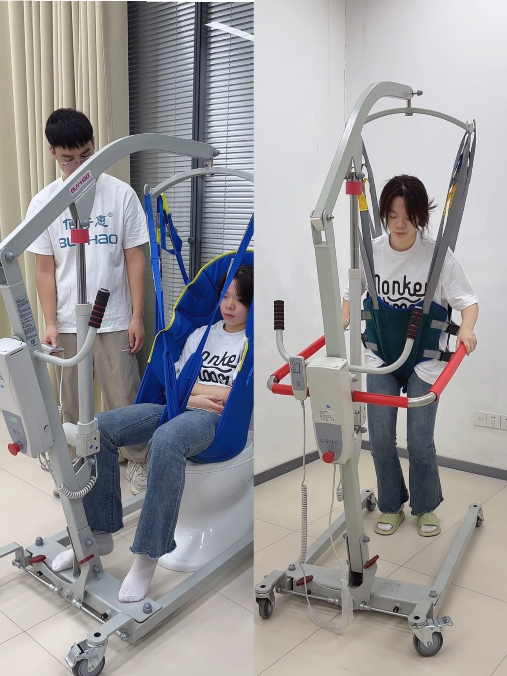 - 灵活移动:移位机大多配备灵活的车轮,可以在不同的地面上自由移动,方便将患者从一个位置转移到另一个位置。有些移位机还可以进行折叠,便于存放和携带,在需要时随时取用。