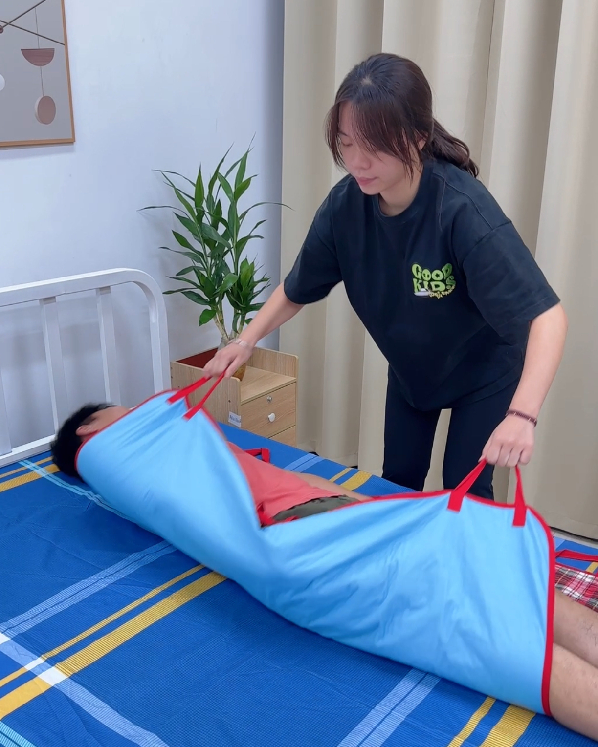 2.协助患者从床上或椅子上转移到移位护理车上,可以使用移位带、滑垫等辅助工具,减轻护理人员的负担。
