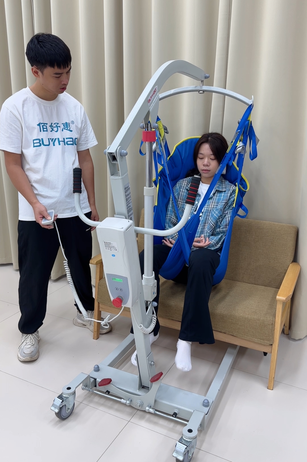 1.部分身体失能但仍有一定意识和配合能力的老人:对于那些因疾病或受伤导致部分身体功能丧失,无法自行移动,但能够理解指令并在一定程度上配合护理人员操作的老人,移位机可以提供安全、有效的转移帮助。例如,患有中风后偏瘫的老人,虽然一侧肢体活动受限,但在护理人员的指导下可以使用移位机进行从床到轮椅的转移。