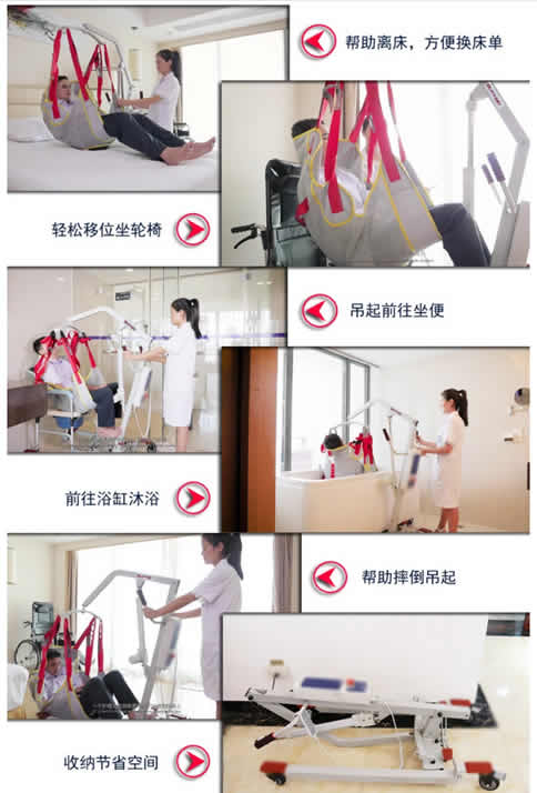坐立式是主要针对全躺、半瘫,以及不能自主完成日常生活活动的患者,需要护理人员帮助移位的患者,都可以使用该款坐立式移位机来完成,在搭配不同的吊兜上可以做到移位轮椅、沐浴洗澡、可以将行动不便的人从一个位置移动到另一个位置,使护理工作更便捷高效和安全舒适,实现了瘫痪病人、急危重症病人、长期卧床的失能人员等不能自主运动人群在床、轮椅、座椅、坐便器之间的安全轻松的转移,降低了护理劳动量,提高了病人或老年人的生活质量。