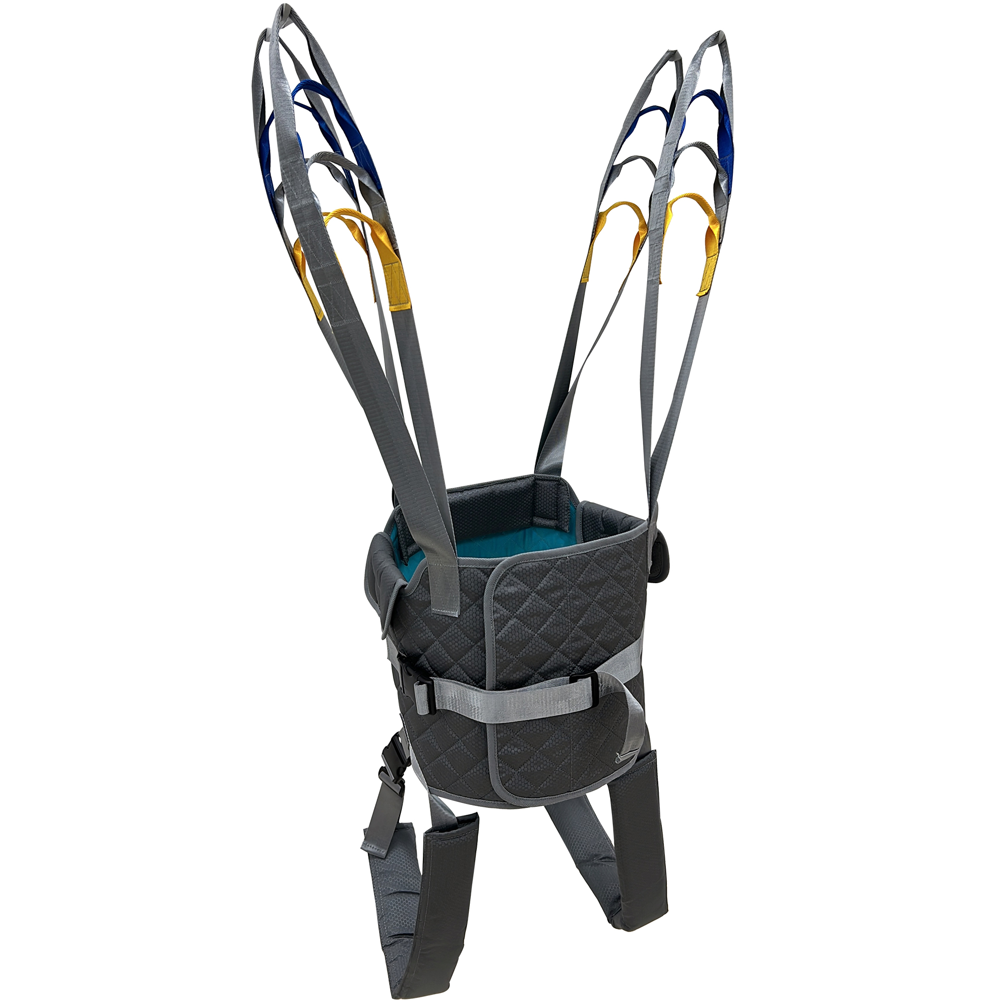 3.特点:最大承重500磅;共有6个挂绳,承重力强,每个挂绳有4个档位,可以根据挂不同档位来调整坐姿;背部设有方向握把,可以调整下降的位置;网状材料设计,透气易干;吊带不包臀部,患者可以上厕所以及轻松上下轮椅。